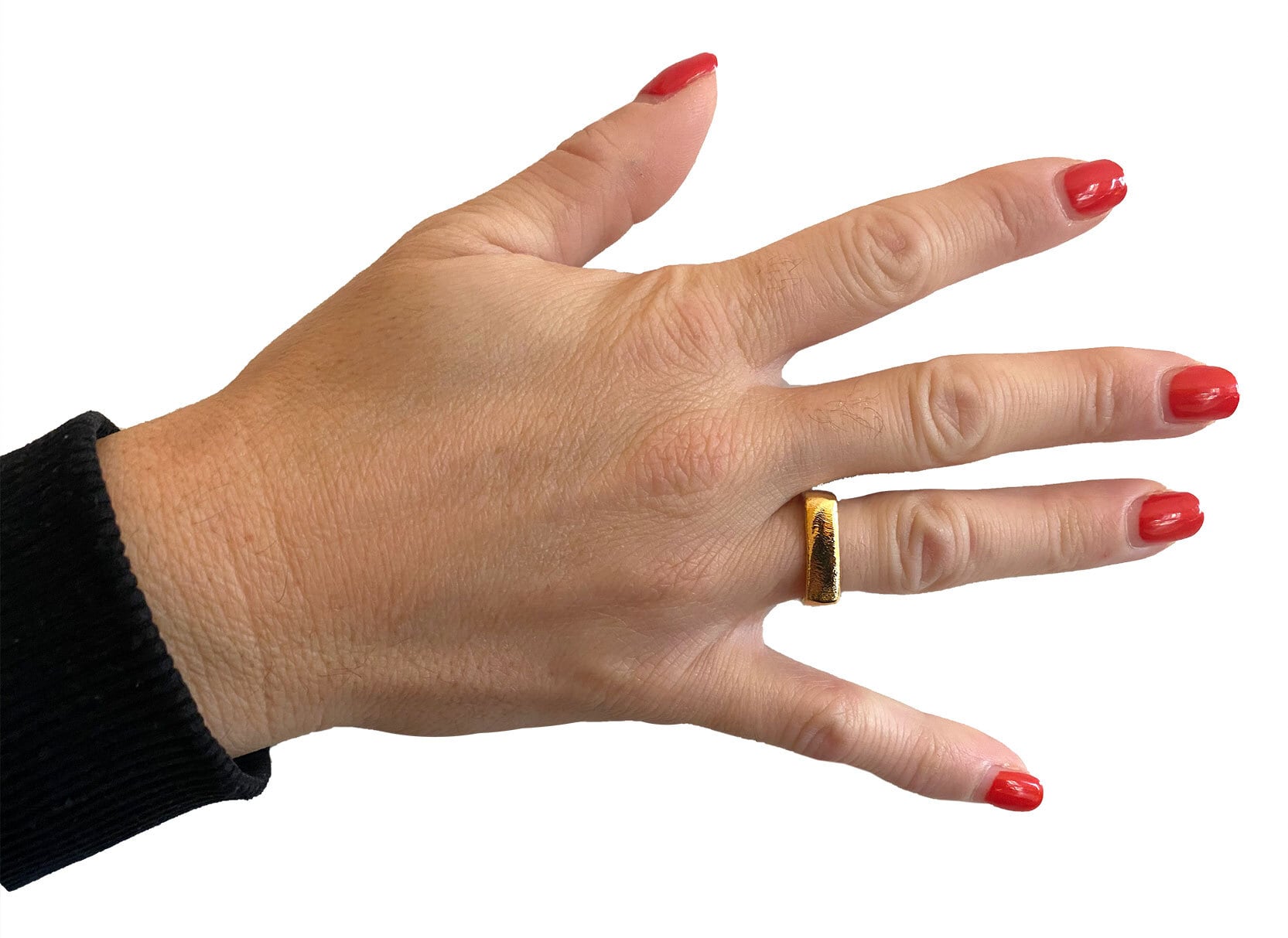 亜鉛メッキでイエローゴールドに加工した個性的な四角いデザインのリング